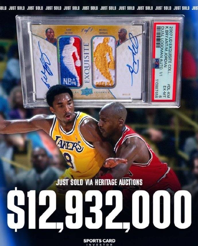 乔丹科比双签球星卡拍出1293万 创历史新纪录